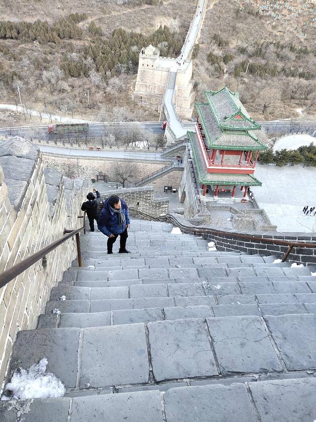 空气比较干冷,台阶又高又陡,爬得挺辛苦的。幸好中间每隔一段路会有烽火台休息一下
