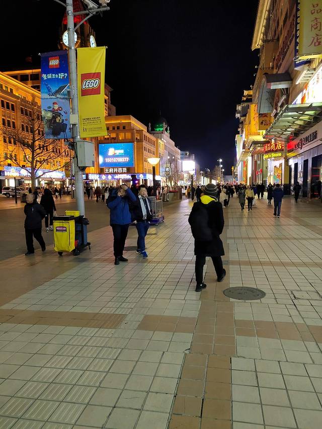 晚上在周边找了一家北京烤鸭店(味道一般,后悔没去全聚德)吃晚餐,听说北京王府井大街比较热闹,我们就奔那里去。去到了发现不知道是因为这里正在施工改造还是天气寒冷的原因,人流量不多,我们随便逛着。街道周边以卖服饰、高档百货居多,小吃的很少。