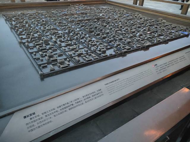 城墙上的唐长安城模型。西安最辉煌的时期。隋末天下群雄并起,617年唐国公李渊于晋阳起兵,次年称帝建立唐朝,定都长安。唐太宗继位后开创贞观之治,为盛唐奠定基础。