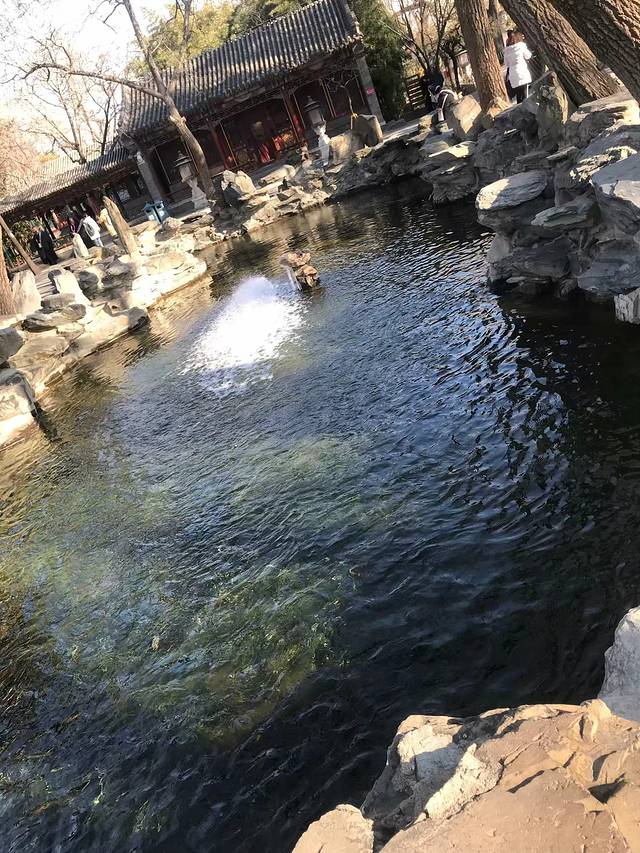 后花园也是观赏重点。花园又名锦翠园,全园以“山”字型假山拱抱,东、南、西面均堆土累石为山,中路又以房山石堆砌洞壑,中设有蝠池(形状像蝙蝠),按照风水学敛财聚福布局。北京据说有两条龙脉,一是土龙,即故宫的龙脉;二是水龙,指后海和北海一线,而恭王府正好在后海和北海之间的连接线上,即龙脉上,因此风水非常的好。