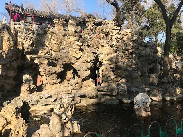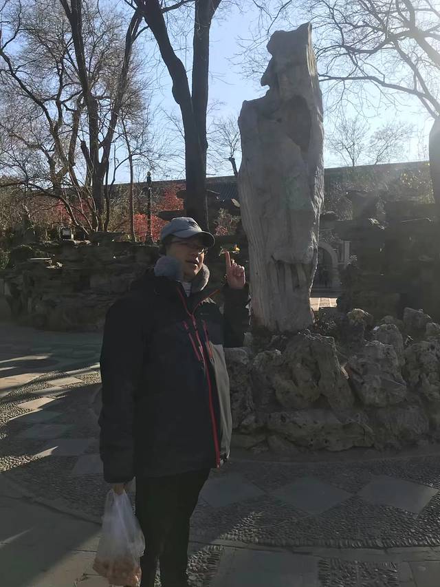 花园中心的“独乐峰”。据说和珅生不出儿子,为了求子,特意从太湖运来这块外形酷似送子观音的太湖石,后果然得子。喔,我手上拿的是门口巷前买的大麻花,口感味道不错。