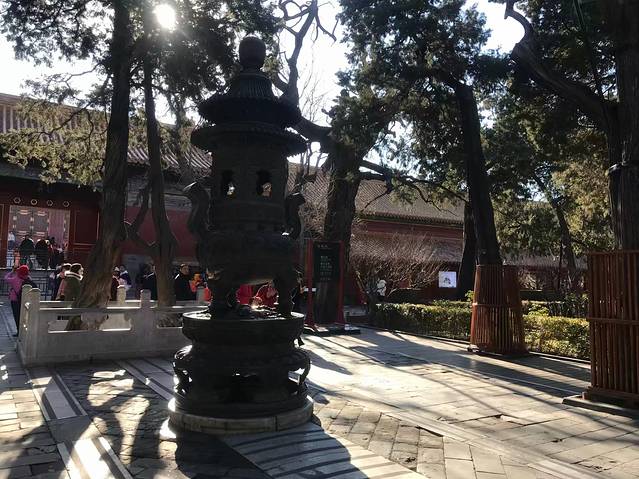 逛完殿体建筑,就走到了后面的御花园。其实挺小的,没有电视剧里那么显得宽阔旷野,鸟语花香,主要是一些古树凉亭。