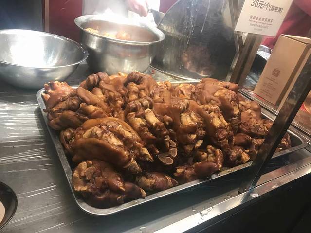 酱猪手、肉夹馍、臊子面、凉皮、烤肉、锅盔、甑糕、豆腐花(酸辣)等小吃基本都有,但我们吃了个酱猪手后就觉得其他东西都挺油腻的。
