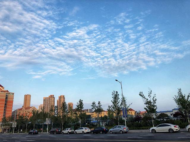 这个天气很适合压马路,也不会很热,微风吹着很舒服。这边是崂山区,可以远远看到崂山,往山那边走,有个村子,往大上坡走一点儿,就非常适合拍夕阳。