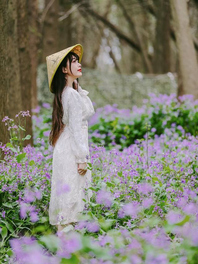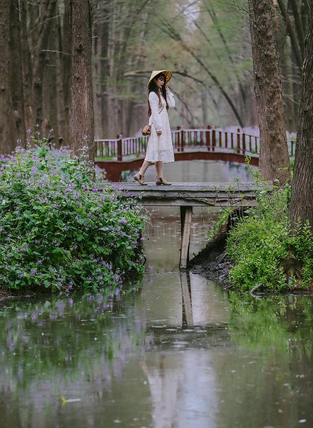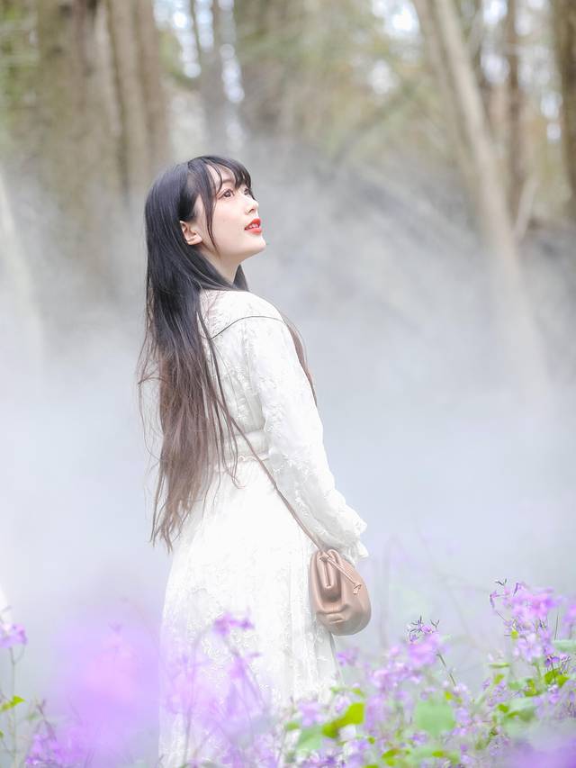 身着一袭白裙步入其中,呼吸着大自然的原始气息,伴着森林中各种珍稀鸟类发出的声音,慢悠悠的漫步在林间,仿佛穿越到了东南亚,光晕、雾气夹杂着参天大树边盛情开放的二月兰,仿佛一不小心,就踏入了现实版的绿野仙踪里。