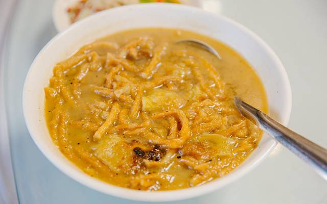 虽然煮干丝和烫干丝同为干丝,但是味道却大不相同。干丝、木耳、甜虾、胡萝卜丝等混在一起佐以浓汤慢炖,一碗汤头浓郁的煮干丝便大功告成,这也是很多人吃早茶的必点项目。