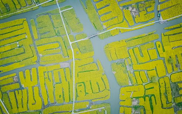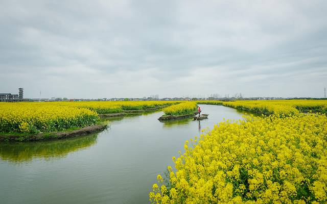 若是说起最佳的观赏方式,那便是乘着游船,深入花田中心,在迷宫一样的菜花间摇晃,悠然地穿梭于繁花遍野的“岛屿”之间,近距离的置身于花海里。