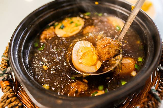 肉圆酱蛋粉丝,据说是兴化当地招待客人最喜欢用的一道菜,确切说不能算菜,一般在早茶中会比较常见。