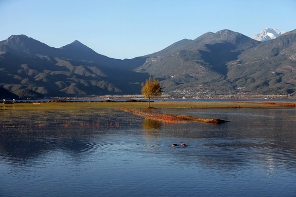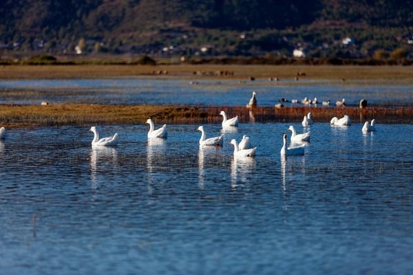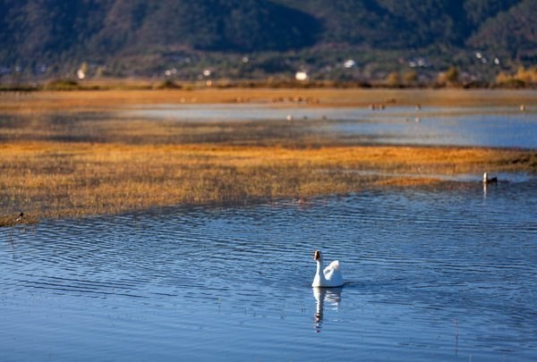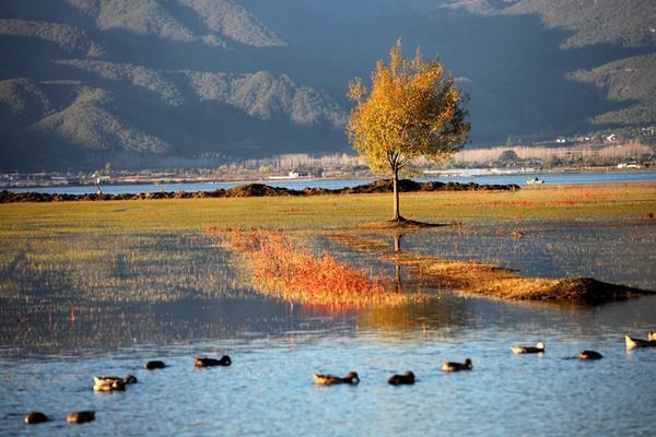 每到冬季,络绎飞来过冬的候鸟们,都会栖息在拉市海周围的山脚和水沼之中。莫不是情死的纳西青年男女,化为了比翼的候鸟,尘世绝灭了他们梦寐以求的幸福,他们的魂灵生出双翅,飞向飘渺安宁的第三国,只是这阳光日日洒落下来,河流绵长山峦纵横的故土,终是不能彻底舍去。