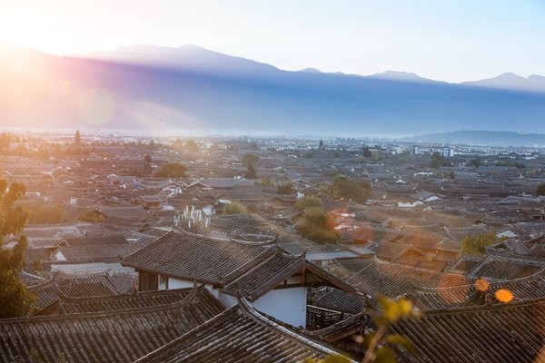 丽江古城坐落在云南省丽江市大研镇,玉龙雪山下丽江坝中部,北依象山,金虹山,西枕狮子山,东南面临数十里的良田沃野。古城街道依山势而建,顺水流而设,质感细腻,以红色角砾岩(五花石)铺就,雨季不泥泞、旱季不飞灰,石上花纹图案自然雅致,质感细腻,与整个城市环境相得益彰。四方街是一个大约4000平方米的梯形小广场。