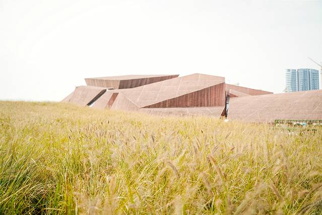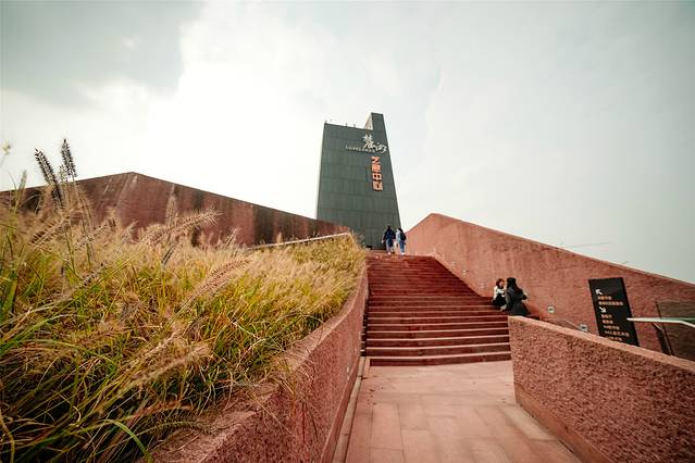 麓湖A4美术馆是由大地建筑之父安托内·普雷多克担纲建筑设计,整体造型十分有艺术感,红岩墙很适合作为拍照的背景墙,美术馆外有大片的芦苇也很好看