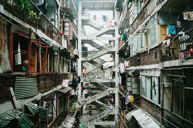 鸳鸯楼其实是没有名字的,两座相对的老楼和楼梯形成了一个不大的天井,与香港老电影里的建筑十分相似。