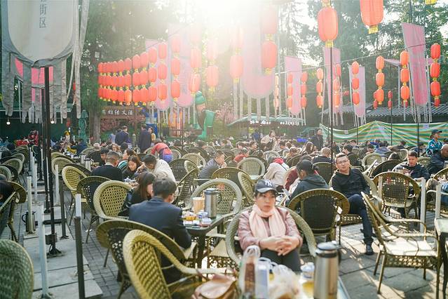 在宽窄巷子里,也能体会到十足的川蜀文化。如果不知道去哪里,便可以找一家茶楼喝喝茶,吃吃点心,看一看川剧变脸。