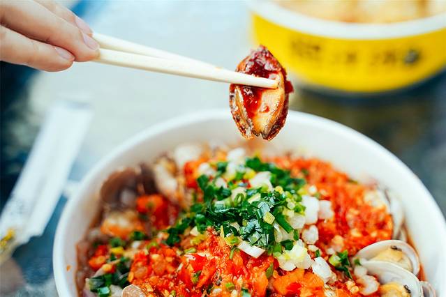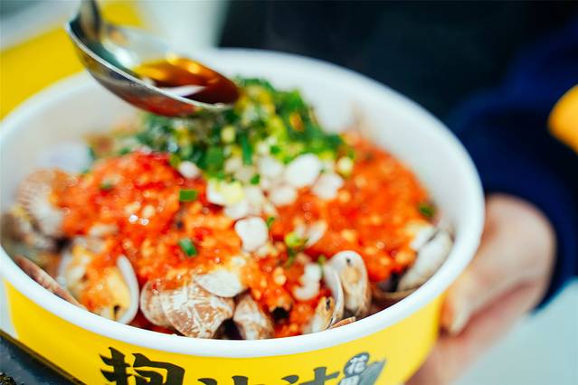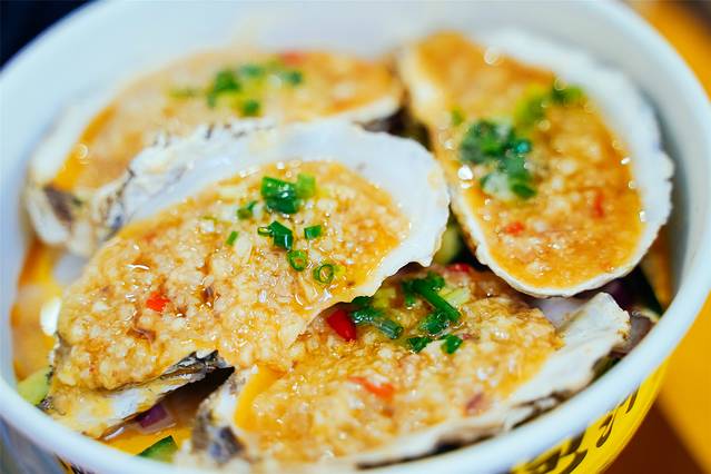 味道是川式麻辣和海鲜搭配,不同于普通的街边小吃,他们家点单小姐姐一直给我介绍的就是他们家是米其林大厨做的…不知道真的假的,但是味道确实不错,五种海鲜,很多种选择,生蚝里面没有沙,颗颗饱满,个头蛮大的。蒜蓉淋在上面,蒜蓉的香气完全祛除了生蚝的腥味,加上各种调味料,生蚝汁多不腥,爽辣开胃!