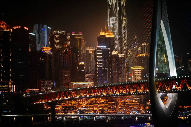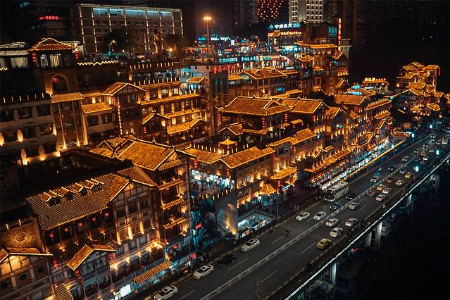 洪崖洞的璀璨夜景一直是让人心驰神往的,这边有最具巴渝传统建筑特色的“吊脚楼”,夜幕降临的时候灯光亮起来,明晃晃灯光让人心都随着荡漾。