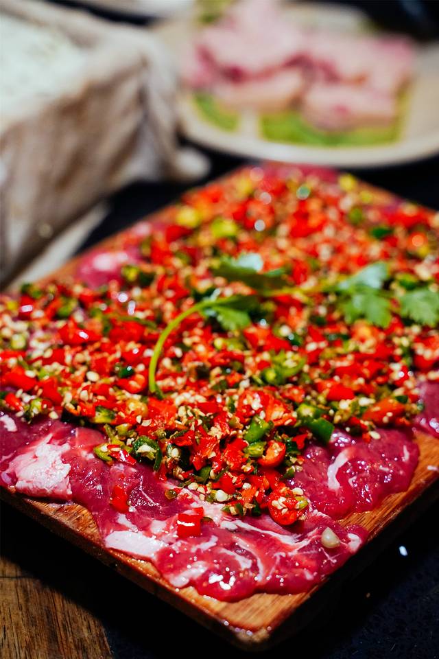 我们点了超级多~肉中间还有鸡蛋,下锅前可以把蛋打散,肉蘸取蛋液下锅会非常嫩。
