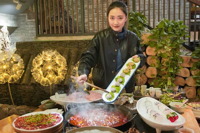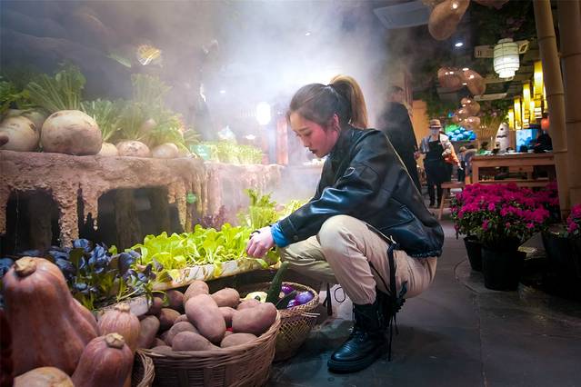 哈哈哈哈哈我是采蔬菜的小姑娘,不过话说回来,在火锅店见到还在土壤里的蔬菜,真的是第一次,可见这里的蔬菜又多新鲜,有种在农场的感觉,有山有水,大红灯笼高高挂,都体现出这家店的新鲜和温情。