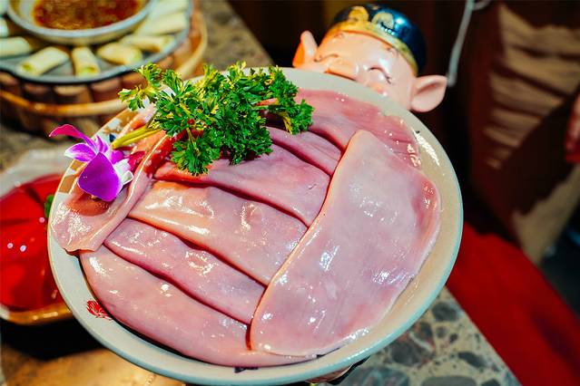 我们还点了这个晾杆土鹅郡26,是菜单上的必点菜,服务员小姐姐极力推荐,就想说点点看。造型很有趣,不像是我们平常吃的郡肝花,郡片色泽新鲜,不大像冻过的,品质比较好。稍微烫一下,颜色变了之后就捞起来入口。爽脆,郡肝花吃起来口感是满足,这个吃起来是脆嫩。值得一试。