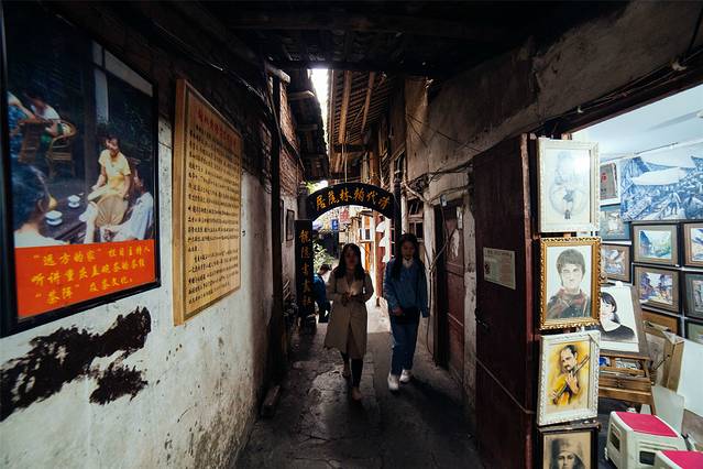 古镇年代感比较重了,老旧的院落,繁密的植物。还有带有年代感的画画方式。