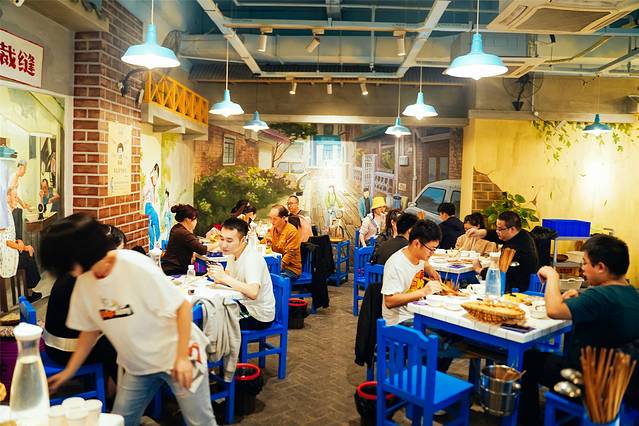 装修蛮复古的,壁画很有着80年代的感觉。桌椅的配色又很撞色,蓝白配显得干净清爽。完全没有平常串串店的油腻。