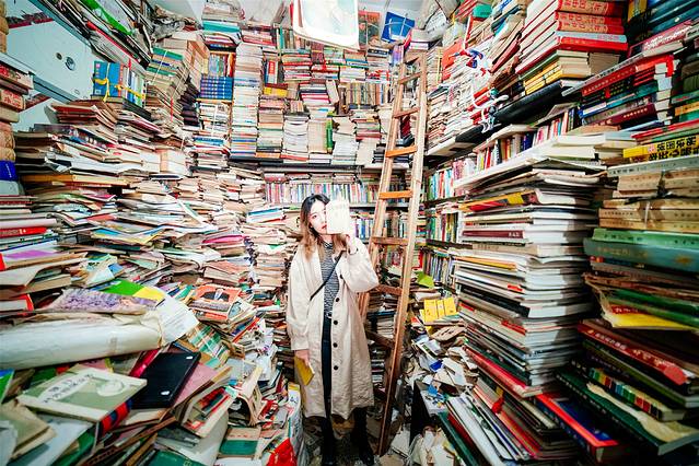 这边有一些门面虽小却堆满宝贝的店铺。例如这个书店。