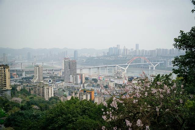 它在山上,居高临下,可以俯瞰部分城市景观,离轻轨站李子坝很近,这边附近 有公交车站🚉打车也可以,说二厂司机就会知道。