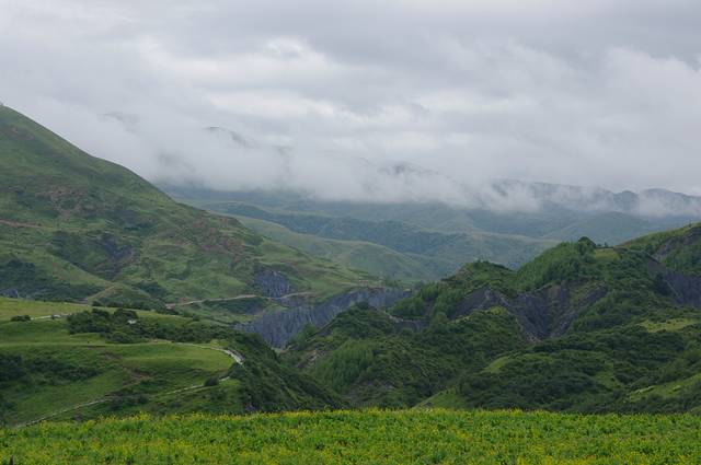 班玛县去色达。三个导航线路不一致,冒险走腾讯导航,4小时,路况一般,但是省了很多时间。色达山顶突然下大雨。对于这样的网红景点我一点兴趣也没有,只是同行的朋友喜欢,就满足他们一下。中午离开色达,甘孜州的路况好像比阿坝州强。六个小时达到道孚县,途中为了拍照,左后轮掉进沟里,成功脱困,夜宿道孚。从色达去往道孚的沿途景色很不错,但天气不好,一直下小雨,没有了蓝天的映衬,照片逊色很多。