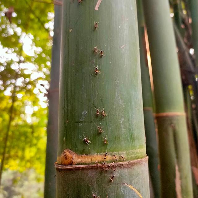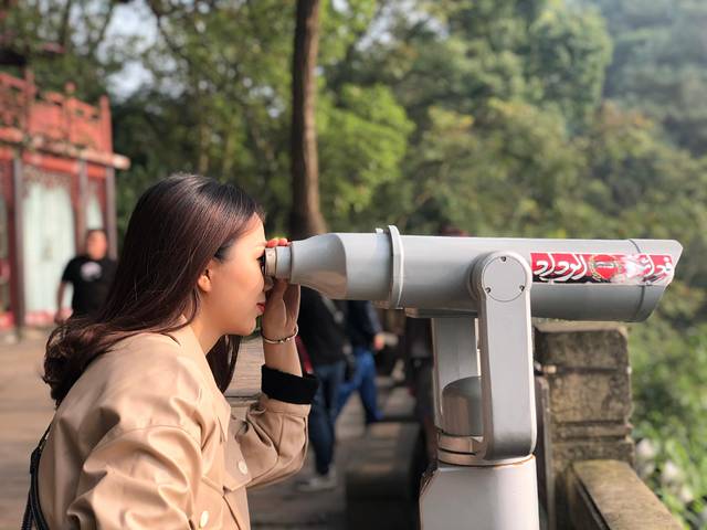 更想找个位置好的地方,更好的看大佛的全貌,那就再看看,继续往上走,穿过一片红墙绿树,方方正正的寺庙出现在眼前,偶尔的敲钟声,还有点燃的竹香,很多虔诚的游客也慕名而来。(没有拍寺庙的照片,想看的话去感受是最好的。)