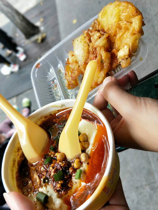 作为湖南人,,,爱吃辣椒的我们竟然放过了豆花~从小吃的是加糖的。冷不丁吃个口味这么重的,我竟然Hold不住呀