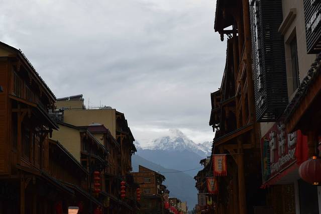 早晨的磨西镇,远处的雪山等待着阳光的照耀。我想,如果全家健康的在这里日出而作日落而息应该是极为幸福的。