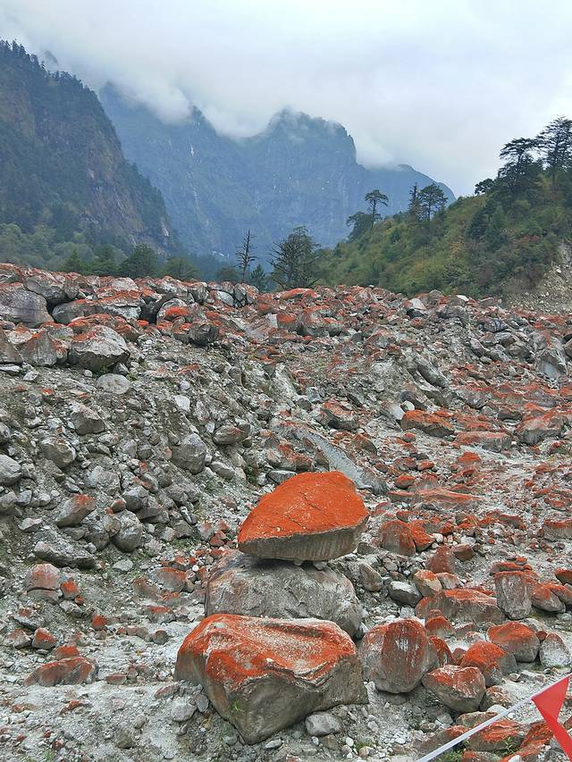 燕子沟!!地标呢~~不知道是来的不是季节还是现在的已经是这样了,红色的石头少了很多,宣传照上的简直是惊艳呢。说这个是藻类附着。