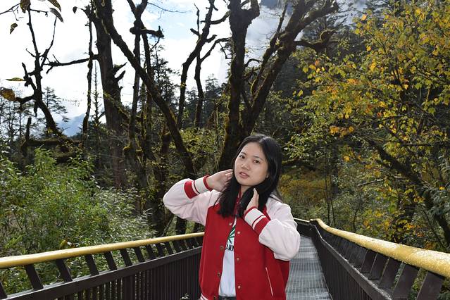 妹纸对这地方也表现了无感,不过捡起的这两片黄叶与她的衣服很是配合了。
