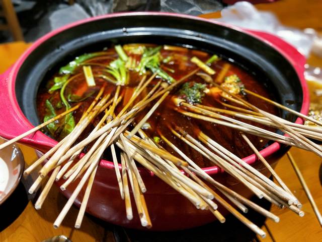 传说中的冷锅串串!!真心冷锅的哈。。这辣的,这红油~~这家就在小酒馆附近的