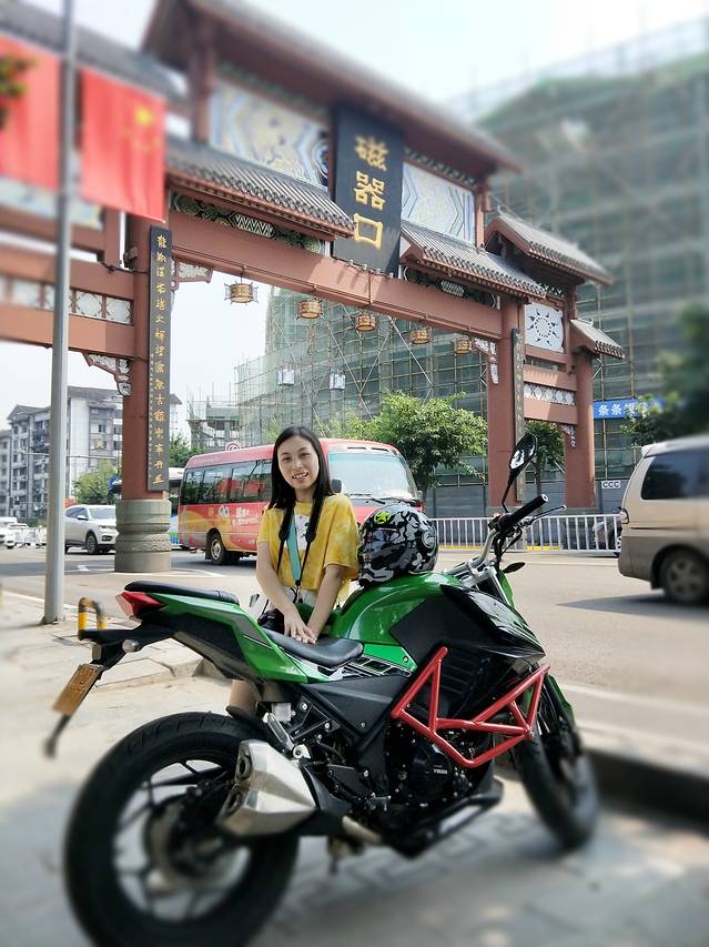 磁器口代表建筑下偶遇的拉风的摩托,,,有种偷摸的帮她拍个照的感觉。就怕车主来了的尴尬,幸好拍完也没来~~不过,谁知道会不会是个帅哥呀!哈哈,可惜没来。