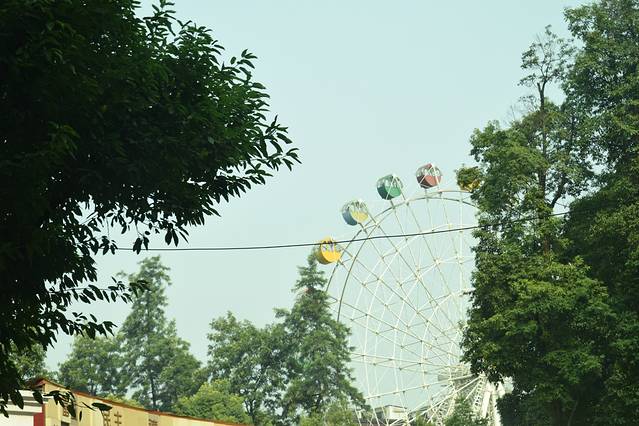 公交车上拍下的路过的景致,摩天轮是代表幸福的吧~~