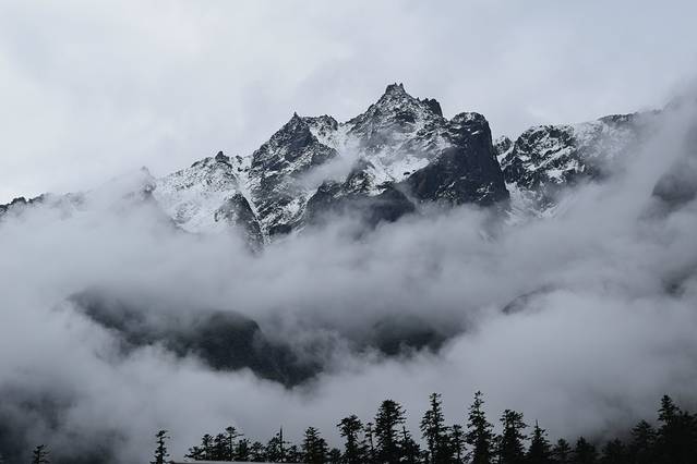 若不是因为阴天,这种应该会更加壮观吧。有些照片还是喜欢黑白的对比。只是乌云挡住的雪山让它缺了一份深远。