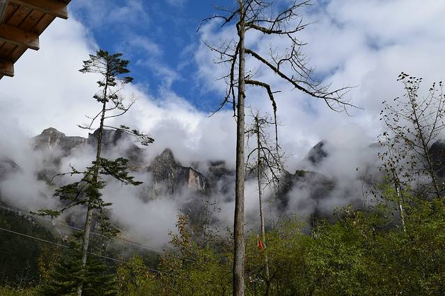 海螺沟和燕子沟是一个行程的,晚间导游推荐可以泡泡温泉,但由于高原上夜间气候还是有点偏凉的,我两默契的选择了苟着。这是晚间住的磨西镇,迎接着早晨的太阳,远处的雪山若隐若现。有的要去登雪山,看日出金山的景象,我两因为不想起那么早,便没有去。有的风景,错过了,也别丧气,稍许的遗憾也会是一种惦记。导游说磨西镇就那么大,住的地方都在镇子里,应该也好找。所以我们报团的时候选择了不含住宿,我两又选了一家网评不错的。入住觉得真心不错,应该是2017年装修的,木质的楼里是北约风格的家居设计,很美好。价格也不贵。具体哪一家忘记了~~