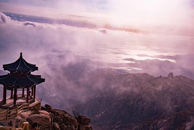 崂山的主峰名为“巨峰”,又称“崂顶”,在青岛有一句古语说:“泰山虽云高,不如东海崂。”崂山以其山海奇观、深邃幽静之胜景,“神仙窟宅”,“洞天福地”之美誉,倍受帝王将相、文人雅士、名道高僧之推崇。山中时常雾气升腾,云海奇观也让游人有种如置仙境之感。