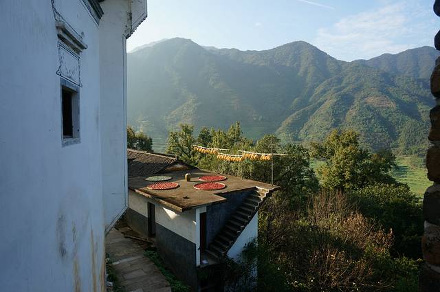 挂在山崖上的篁岭古村,地无三尺平,数百年来,村民早已习惯用平和的心态与崎岖的地形"交流"。