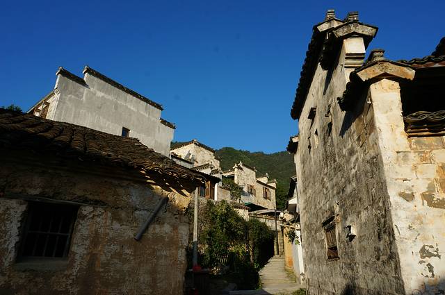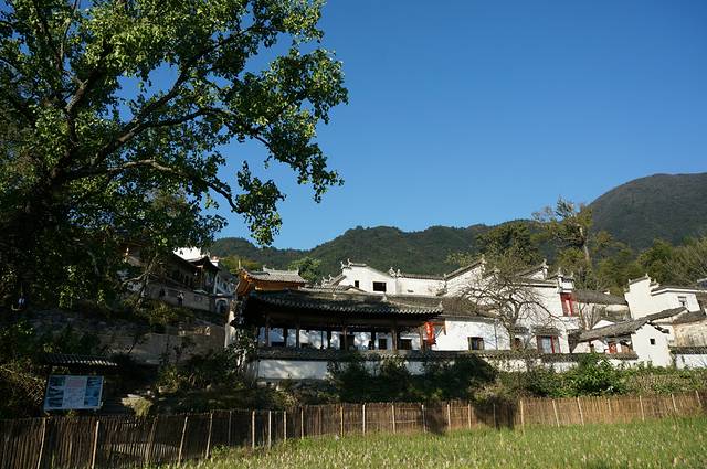 村口及周围地带多植乌桕树,且古树参天,每到秋季,满山树叶色彩斑斓,粉墙黛瓦掩映其中,美不胜收。只是我们去的不是时候。