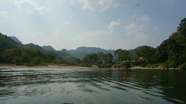长沙-崀山400公里,国庆期间高速车多,速度慢,到达崀山景区已近下午2点,游客中心的人说上山的人太多,还不如先去体验下夫夷江的漂流,等傍晚再去爬山。我就听从了这个意见,直奔夫夷江漂流点了。