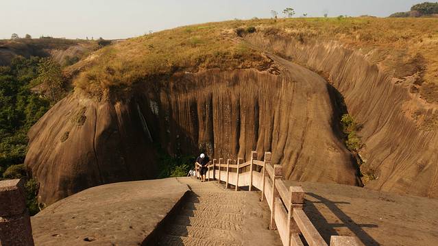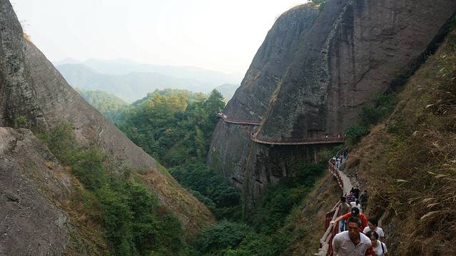 一个多小时结束了漂流,崀山入口看起来人还是不少,有游客说等缆车排队的时间就爬上山了,我觉得我的体力还不错,就跟着他们一起爬山了。
