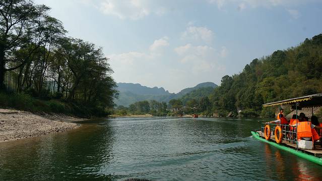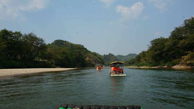 夫夷江漂流时而平缓如镜、时而湍急起伏、时而绿树成荫、时而野花丛丛,蜂蝶相戏、激流险阻,让大家感觉无比紧张与刺激,一路尖叫不断。整个漂流过程急缓有续,融合了惊险、刺激、浪漫、激情与奇趣,使大家与大自然融为一体,陶醉在大自然的怀抱之中,乐而忘返。