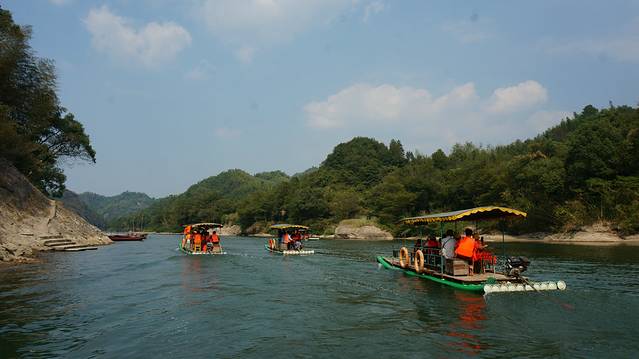 漂程12公里,江水清澈见底,平缓如镜,水面宽约100米,窄处70多米。