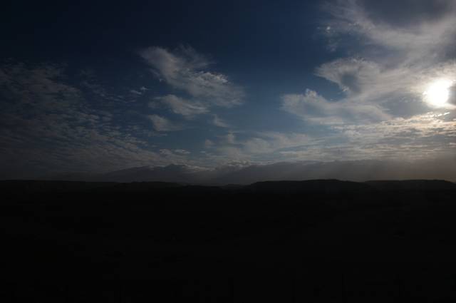 银川-额济纳旗800多公里,这边天亮的很晚,我们出发的时候太阳还没出来,印象中好像翻了一座山,好像是贺兰山,就进入空旷的沙漠边缘了。