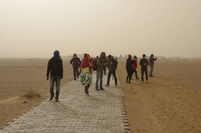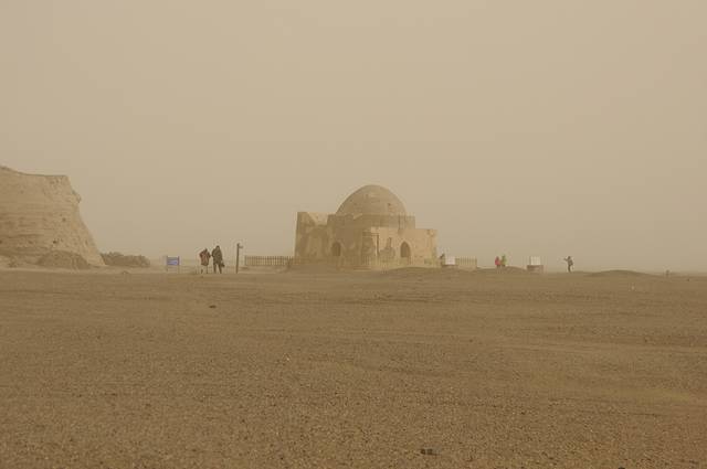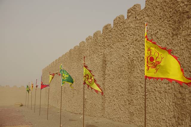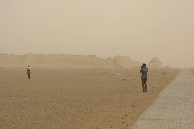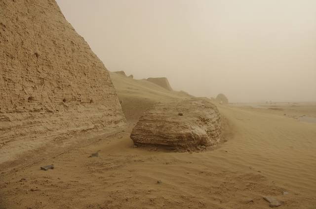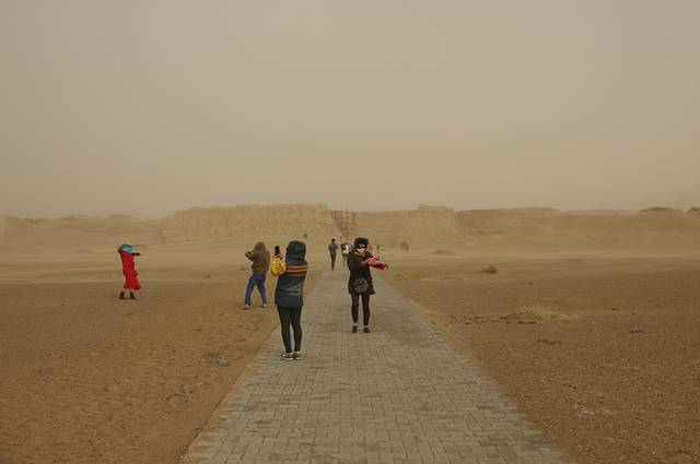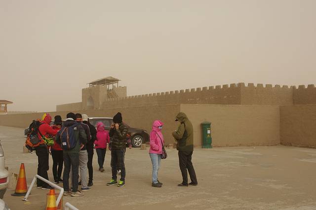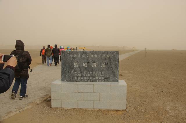 到达黑水古城遗址停车场,似乎风沙都小了一些,我们决定冒着沙尘暴去古城里看看。