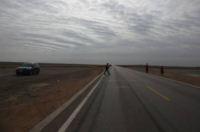 我们似乎又犯了一个错,一早去北线方向,北线有居延海和策克口岸,太冷了,装备不够。从额济纳旗到居延海65公里。