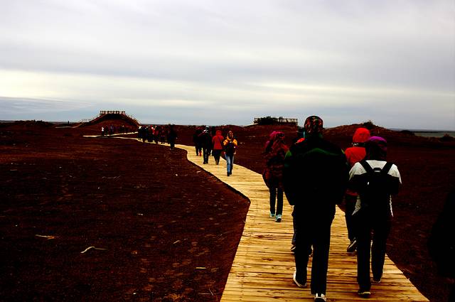 来看胡杨林,就是一个梦,酒店老板告诉我们,看胡杨林要从一早等候日出一直到傍晚太阳西下,这样才可以拍出来好照片,我们几个都是摄影的外行,但还是想看看日出,所以很早就起来了,没想到我们到达景区游客中心的时候,那里已经有很多人了,好在我们进入景区的时候太阳还没出来。