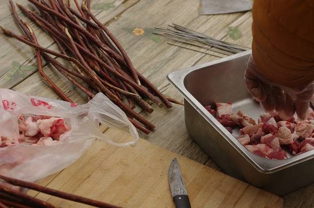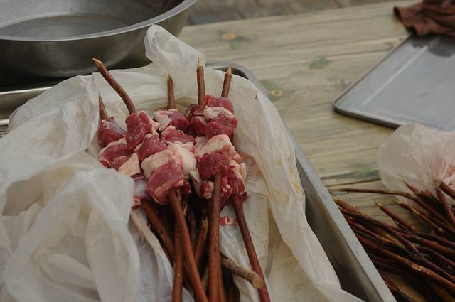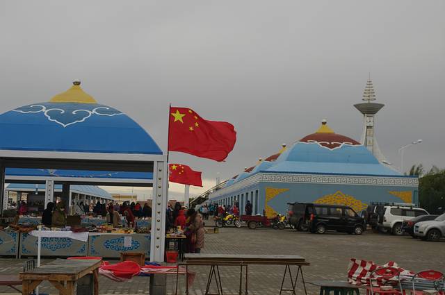 宿额济纳旗。整点肉串吧,怎么都是树枝窜起来的。20块钱一串,国庆期间的吃真贵啊。