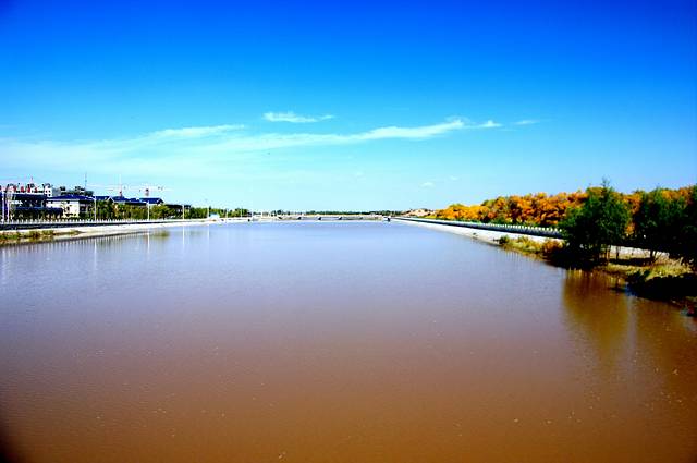 额济纳旗城市很小,有条河,就在胡杨林景区附近。